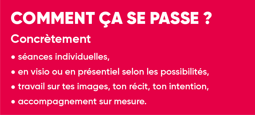 Je propose un accompagnement personnalisé pour t’aider à construire ou affiner ton dossier artistique, clarifier ton univers, préparer un oral et gagner en confiance dans ton travail, avec un regard professionnel, à la fois bienveillant et exigeant.